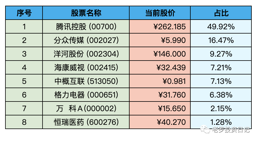 本周老罗的持仓上涨了 6.61%,今年收益率 -13.42%,沪深300今年收益率为 -23.05%,继续跑赢沪深300。