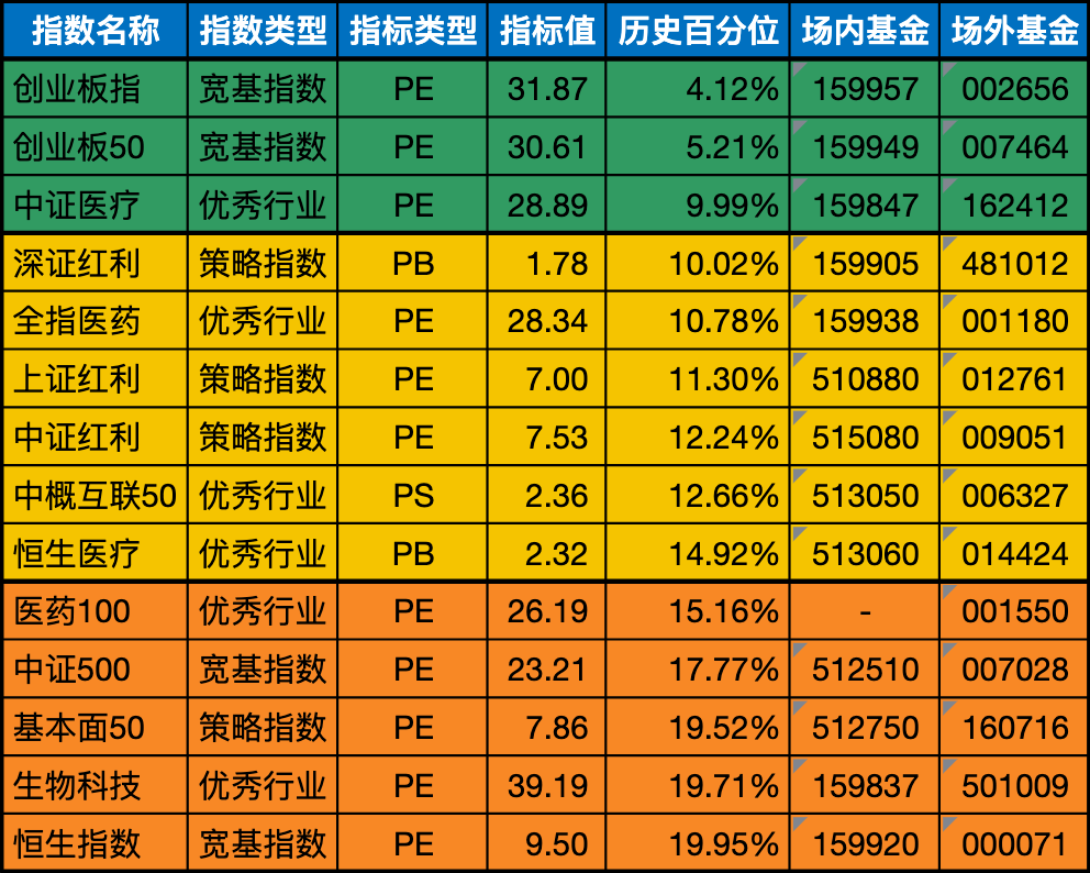受医疗领域反腐风暴影响,近期医疗、医药指数回撤较多,中证医疗、全指医药指数都回到了低估区间。